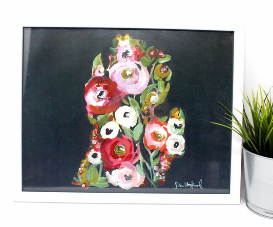 Black Floral Michigan Art Print 11x14in
