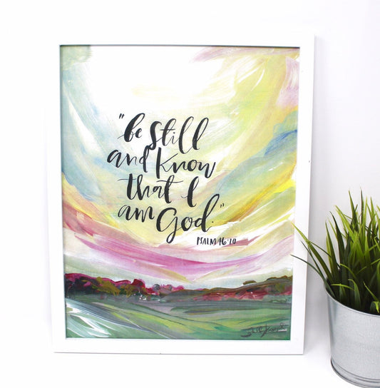 Be Still and Know Art Print -11x14in, Quote Art, Simple Design, Landscape Artwork