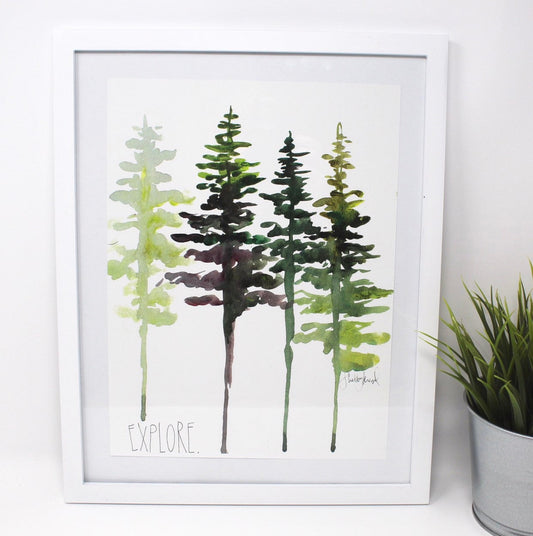 Watercolor Pine Tree Art Print, Wall Decor, Trees Wall Art, 8x10 Explore Print