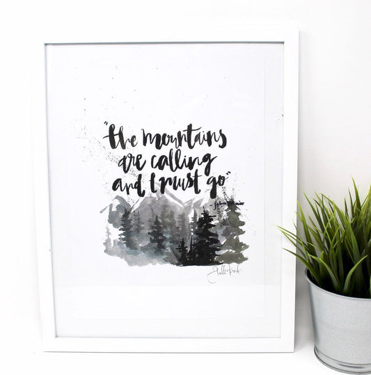 The Mountains Are Calling, and I Must Go- Art Print, 8x10, Inspirational Quote, John Muir, Wall Art