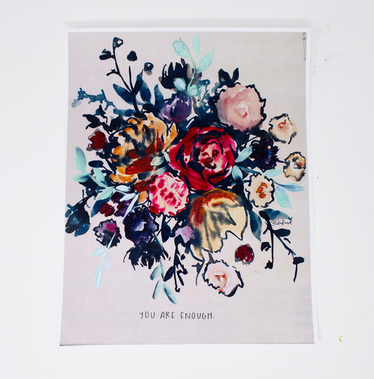 You Are Enough 11x14 Watercolor Art Print, Floral Painting, Flowers Watercolor, Christian Quote