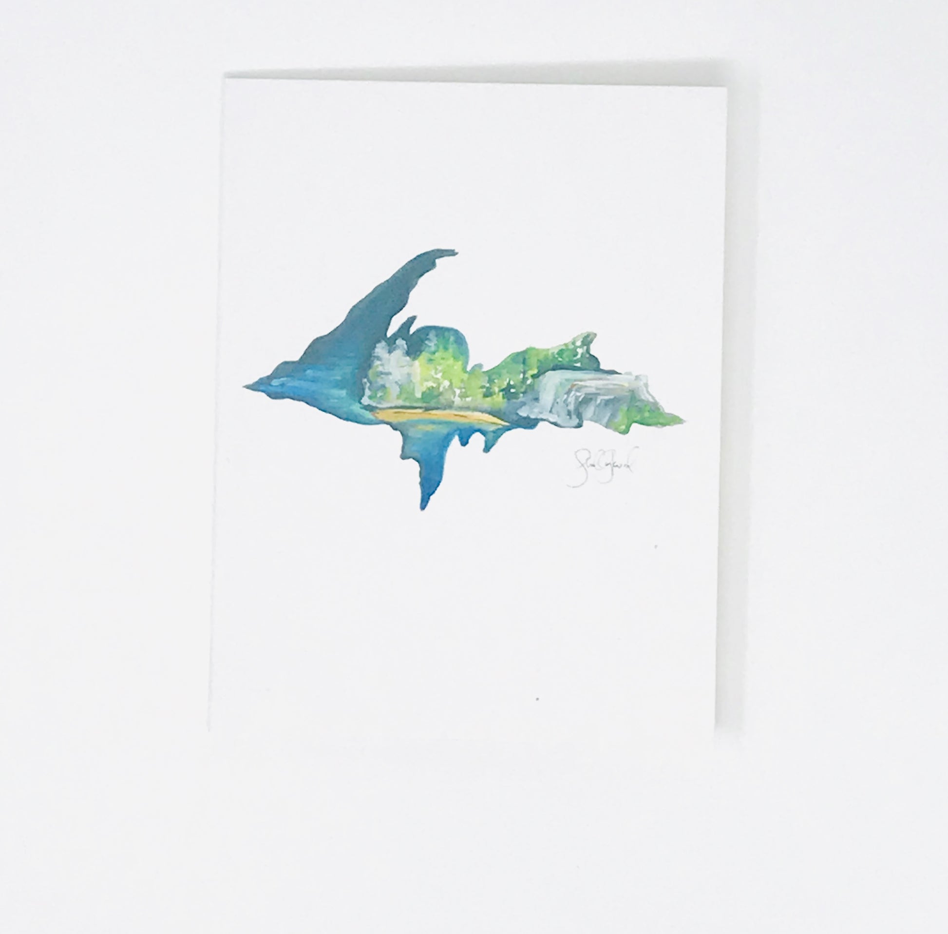 Send a message with a touch of home with this unique set of greeting cards. This set features four distinct designs of our Great Lakes State, each showcasing the beauty found in our upper and lower peninsulas.